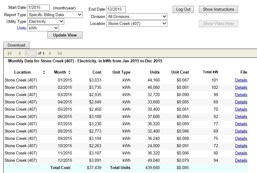 Click above to view your organization’s utility data in graphical format by location or account.